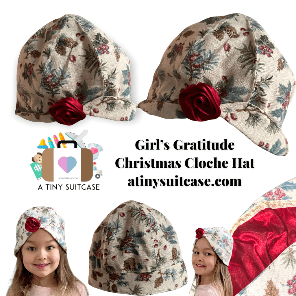 When the weather gets colder, it’s so much fun for me to create clothes and accessories to keep us warmer. One of the seasonal projects I just finished is a beautiful girl’s 1920’s style Cloche hat with an inside band of “gratitude ribbon”. It was ribbon I had leftover from another project, that matched my color scheme but it created the reminder to be thankful (and is now called the “Cloche gratitude hat” 😉).